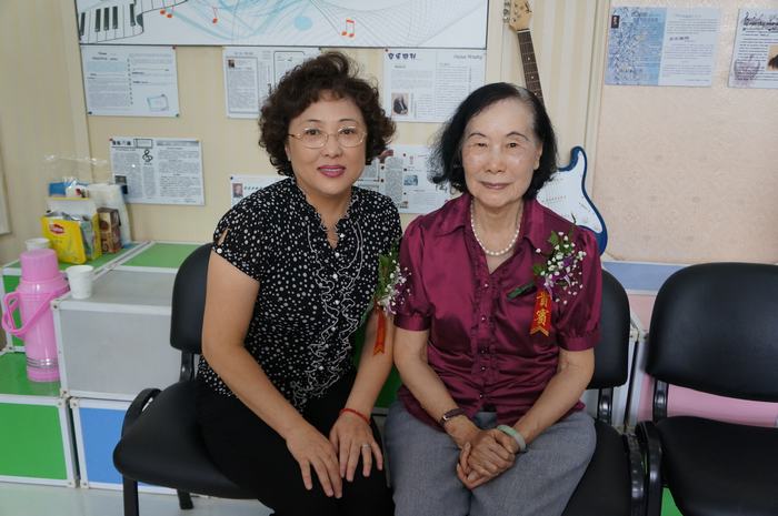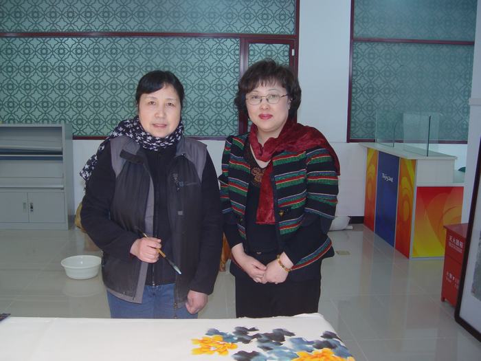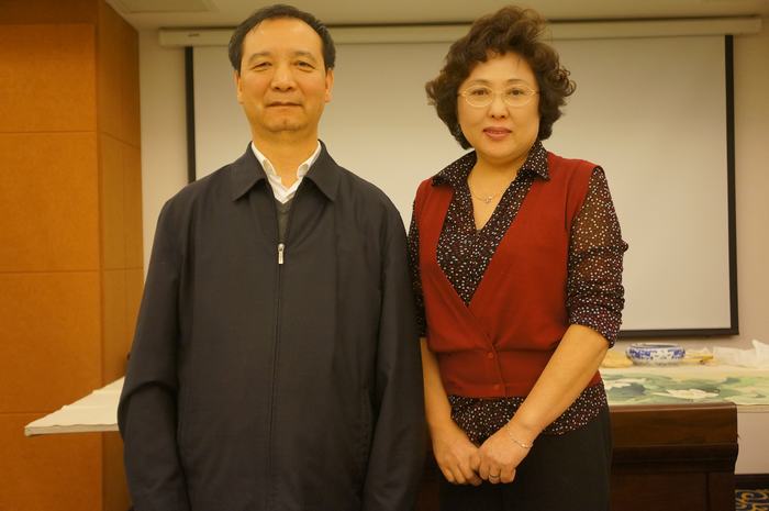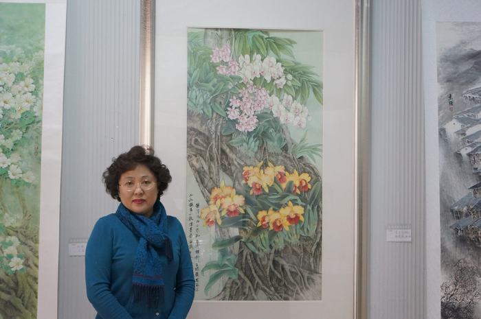和著名画家杜希贤、毛水仙在“和平与艺术”展览会自己的作品前留影.JPG
